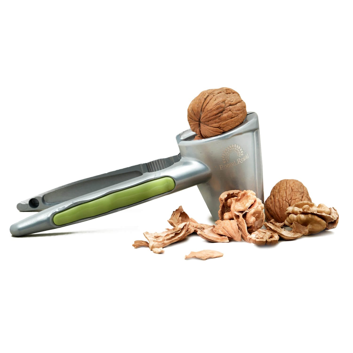 Spărgător – confecționat din aluminiu, de înalta calitate. Datorita formei specifice în forma de pâlnie, se pot sparge nuci, alune, migdale fără probleme, iar miezul va rămâne intact. Dacă se păstrează forma intacta a miezului, puteți folosi ca decorațiuni la torturi sau pentru alte ornamente.